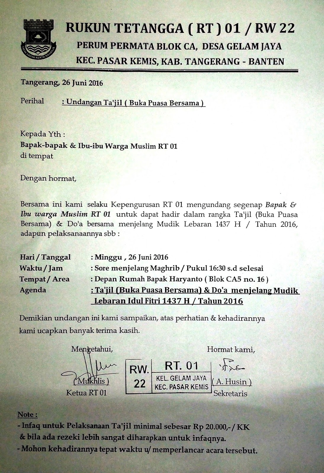 RT 01 / RW 22 PERMATA BLOK CA: Undangan Buka Puasa Bersama (Bukber)