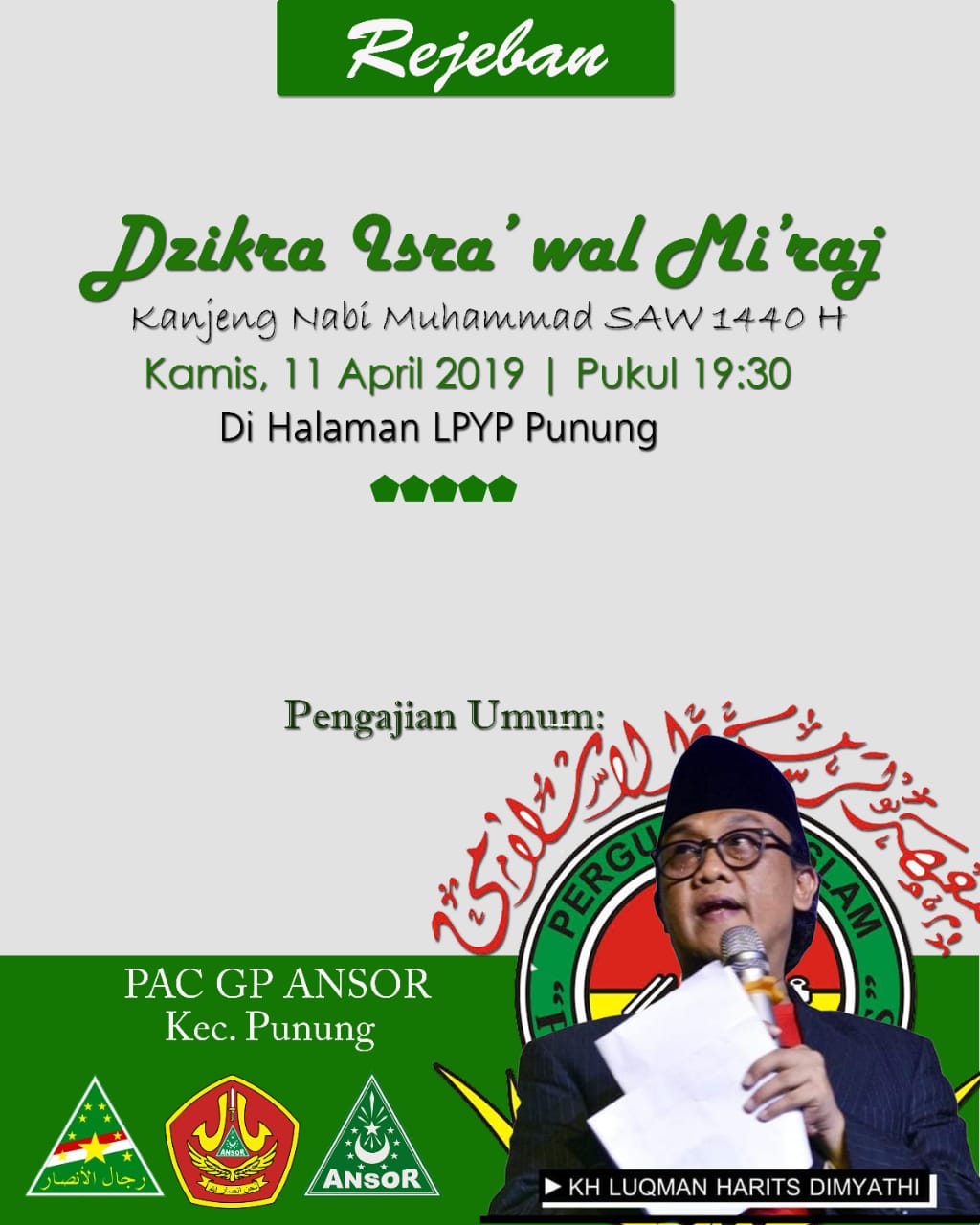 Undangan Pengajian Isro' Mi’roj Nabi Muhammad S.A.W GP Ansor Punung