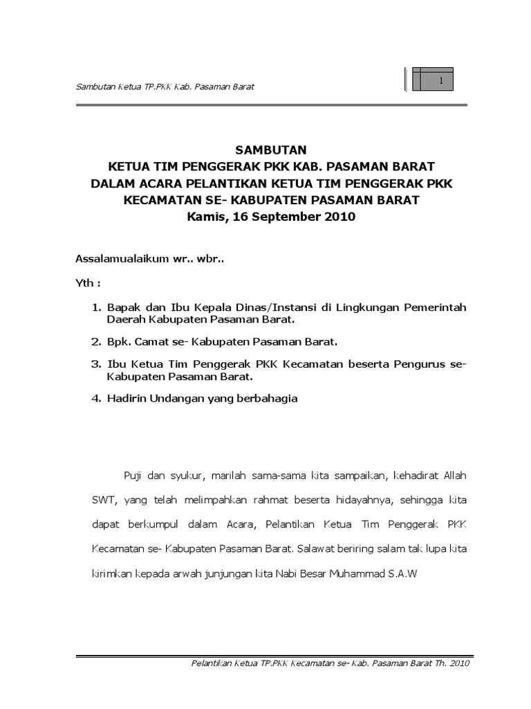 Contoh Naskah Sambutan Ketua Pertemuan Rutin PKK | MUDA MUDI …