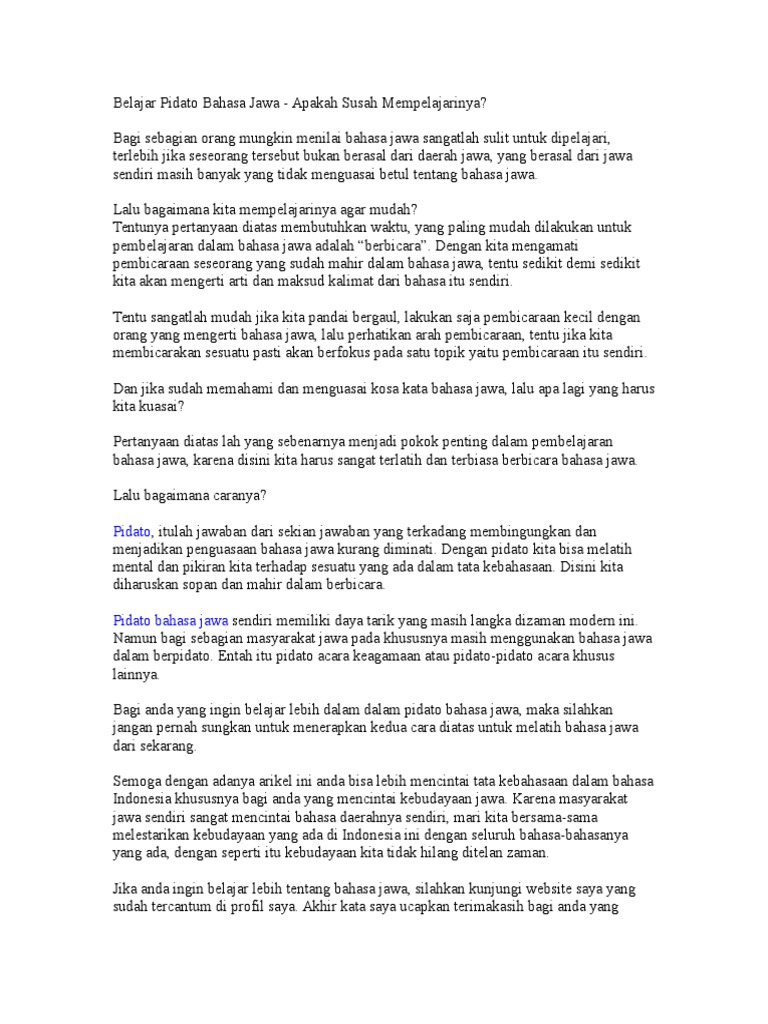 Pidato Tentang Pendidikan Bahasa Jawa