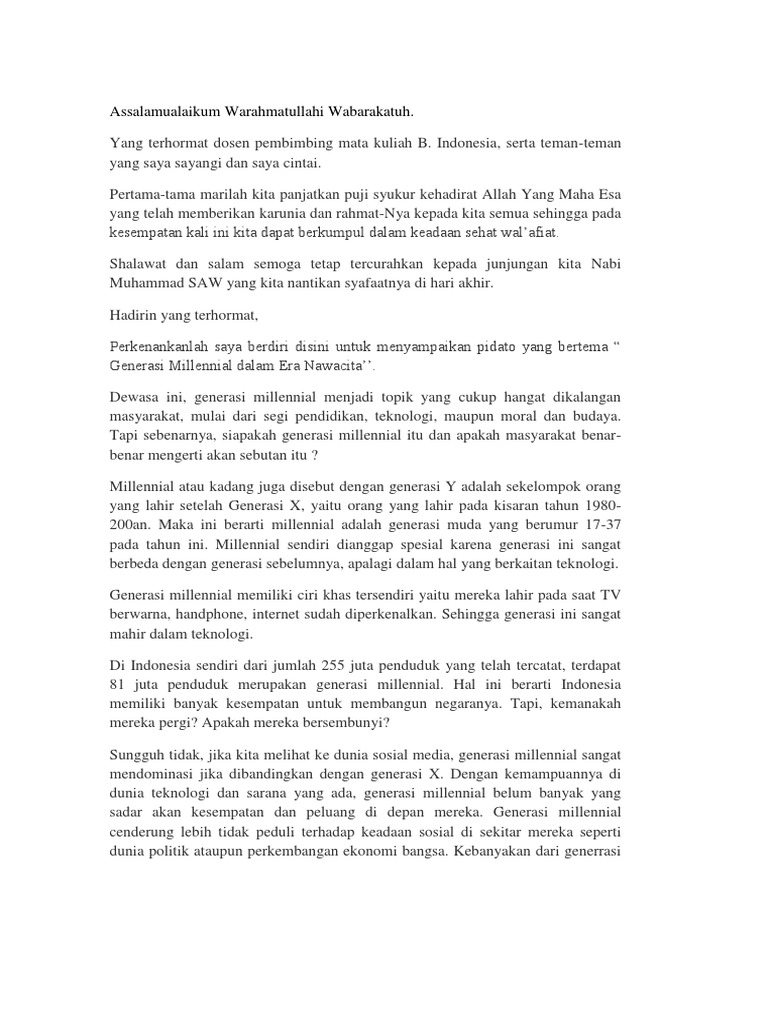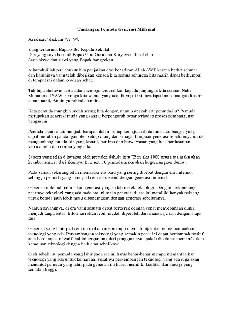 Contoh Pidato Generasi Milenial | Contoh Soal Dan Materi Pelajaran 3