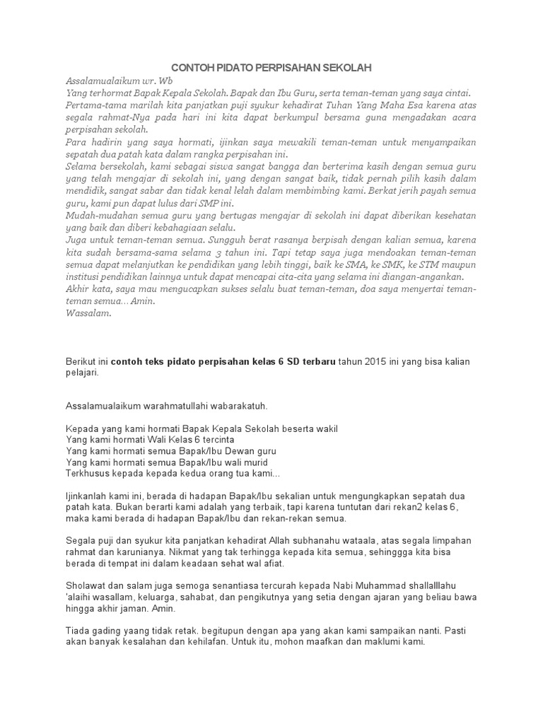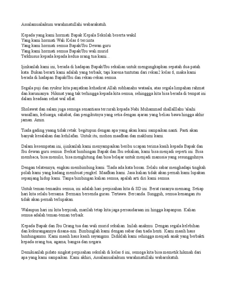 Pidato Perpisahan Kelas 6 Singkat Jelas Padat [jlk9y36x5545]