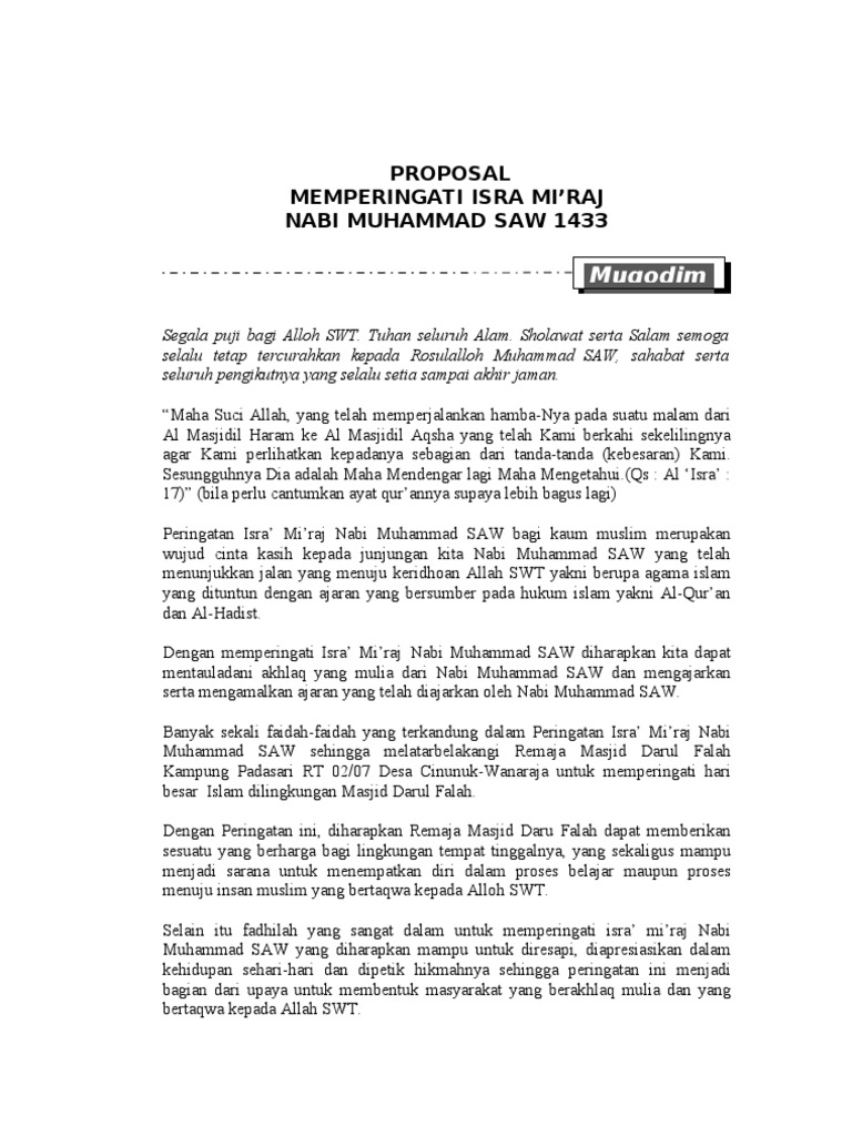 DOC) PROPOSAL KEGIATAN ISRA' MI’RAJ NABI MUHAMMAD SAW | Nurleni Firman - Academia.edu