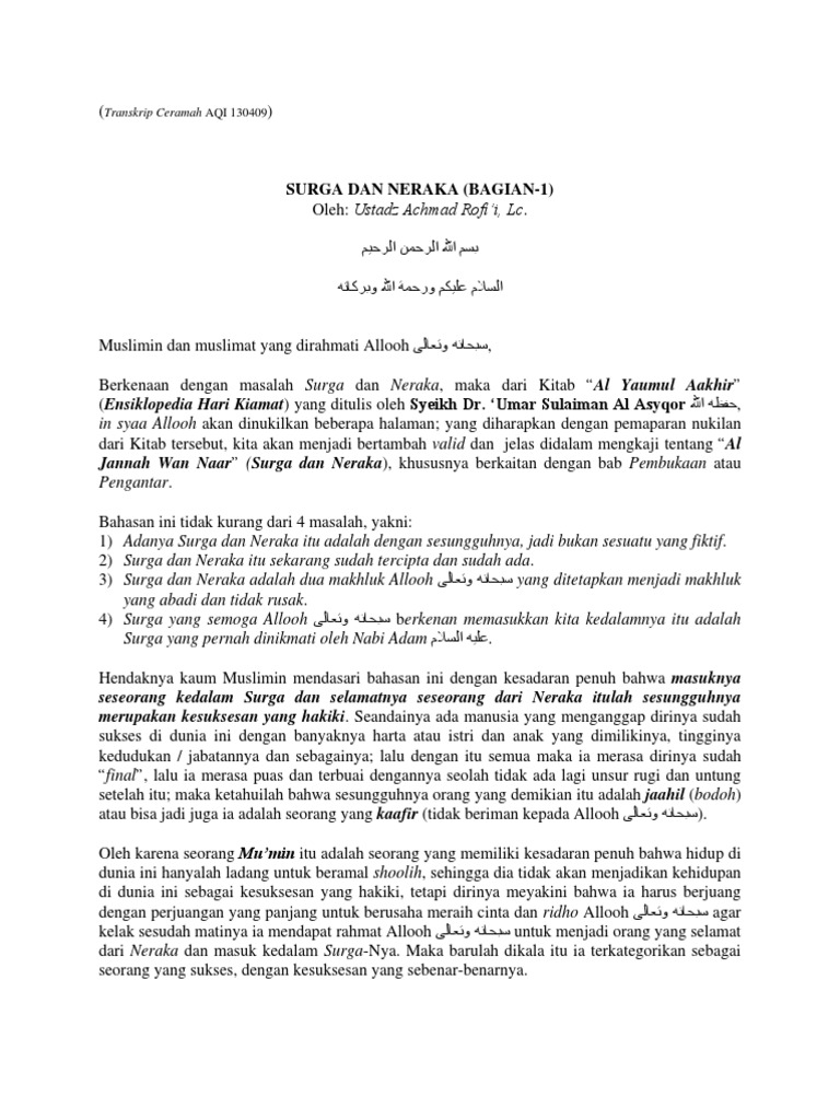 DOC) Dalil Surga dan Neraka | Hamba Allah - Academia.edu