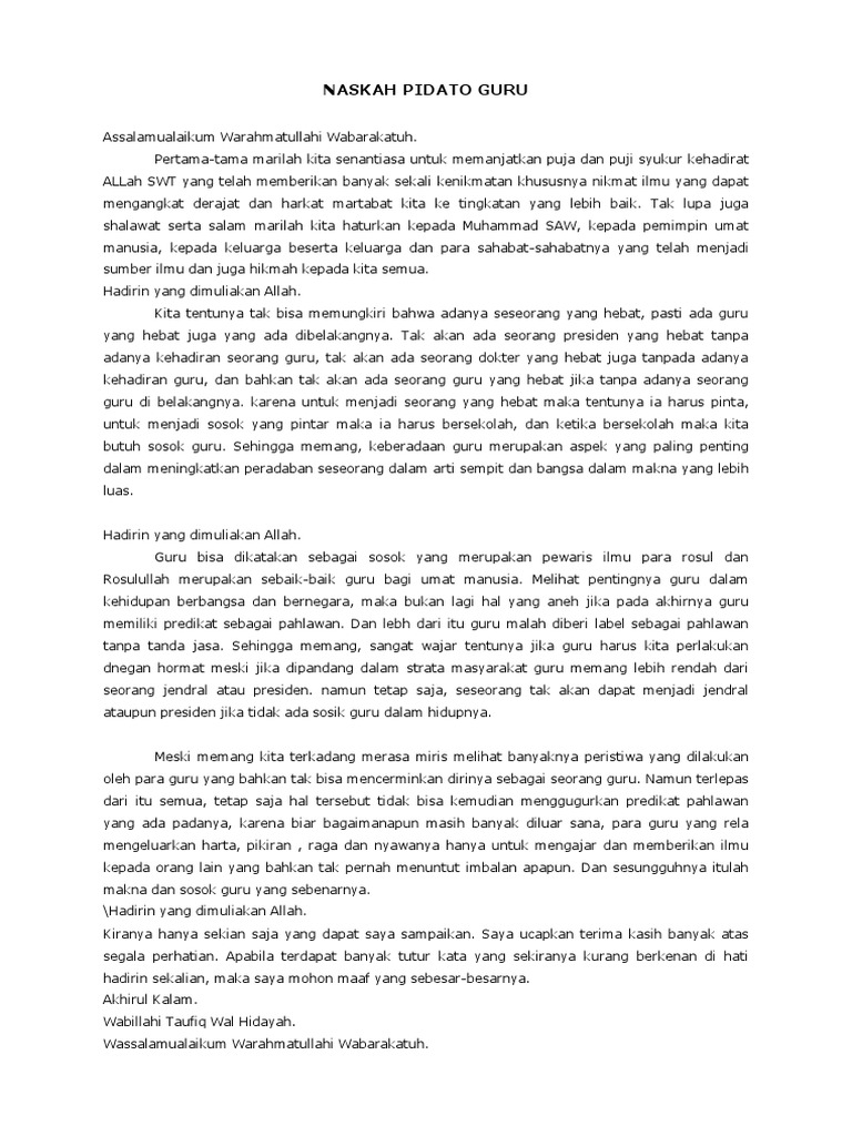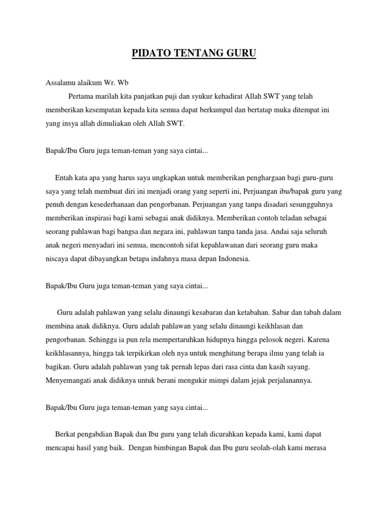 Contoh Naskah Pidato Guru Pahlawan Tanpa Tanda Jasa - Contoh …