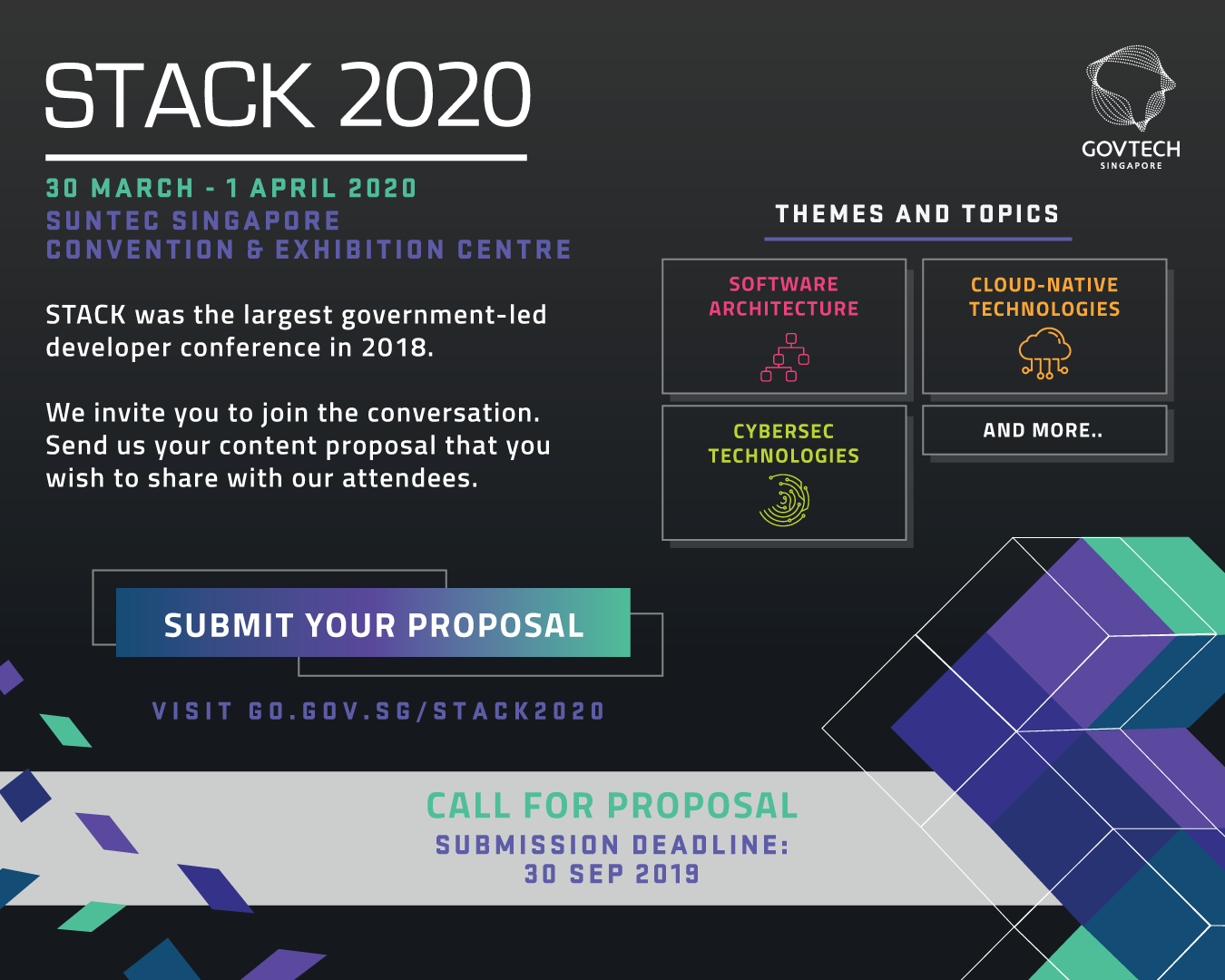 GovTech (Singapore) on Twitter: “Call for proposals for the highly anticipated STACK 2020 are now open: https://t.co/dSsd1I2qkB Join the conversation and share your ideas and knowledge with like-minded individuals at Singapore’s largest