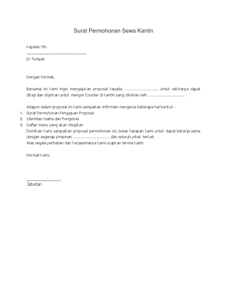 Contoh Surat Izin Sewa Kantin