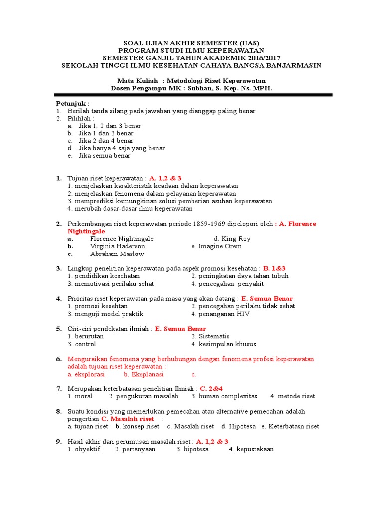 DOC) CONTOH SOAL UJI KOMPETENSI TENAGA KESEHATAN LINGKUNGAN | Ira Desilia - Academia.edu