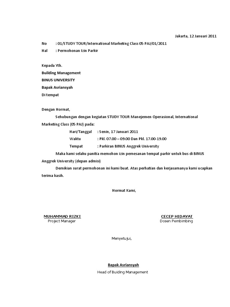 Contoh Surat Permohonan Izin Tempat Parkir - Sederet Tempat
