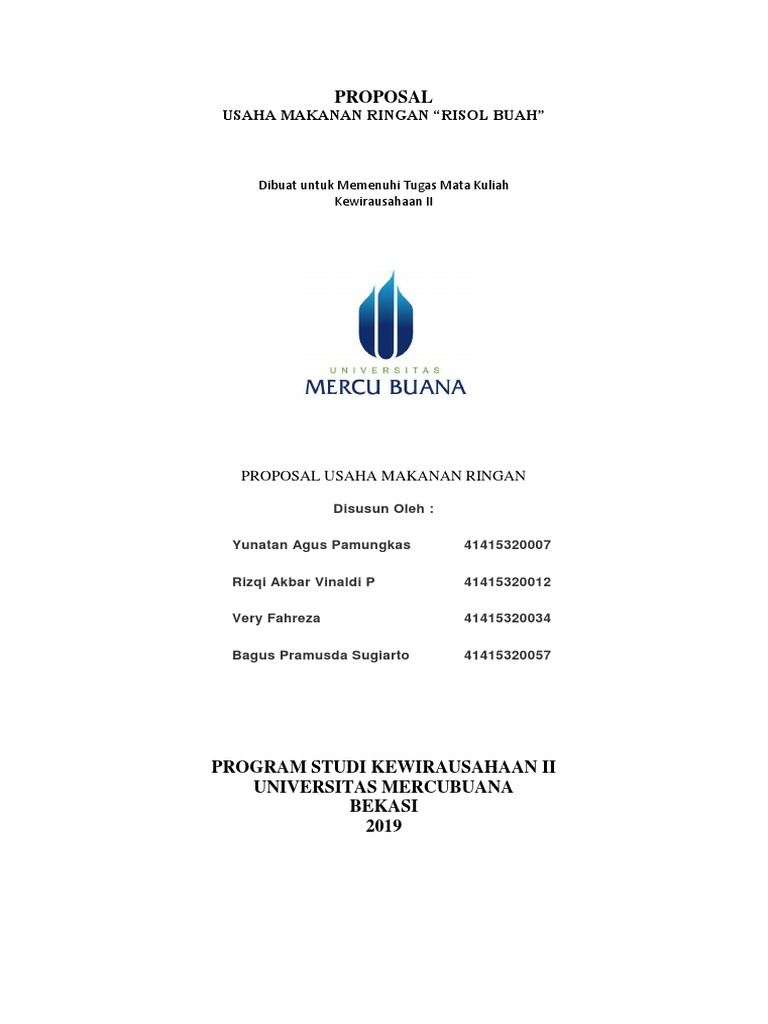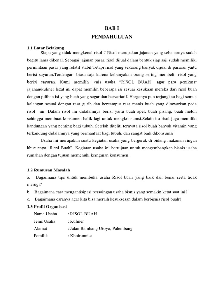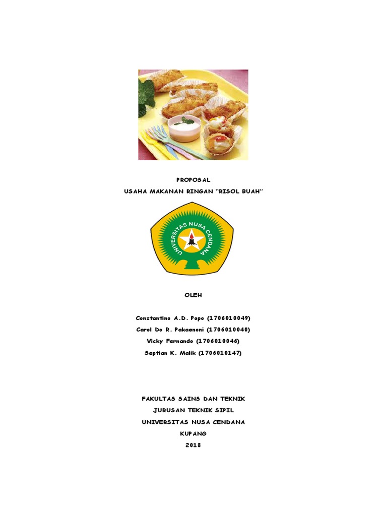 PDF) PROPOSAL USAHA MAKANAN RINGAN “RISOL BUAH” | taufiq abadi - Academia.edu