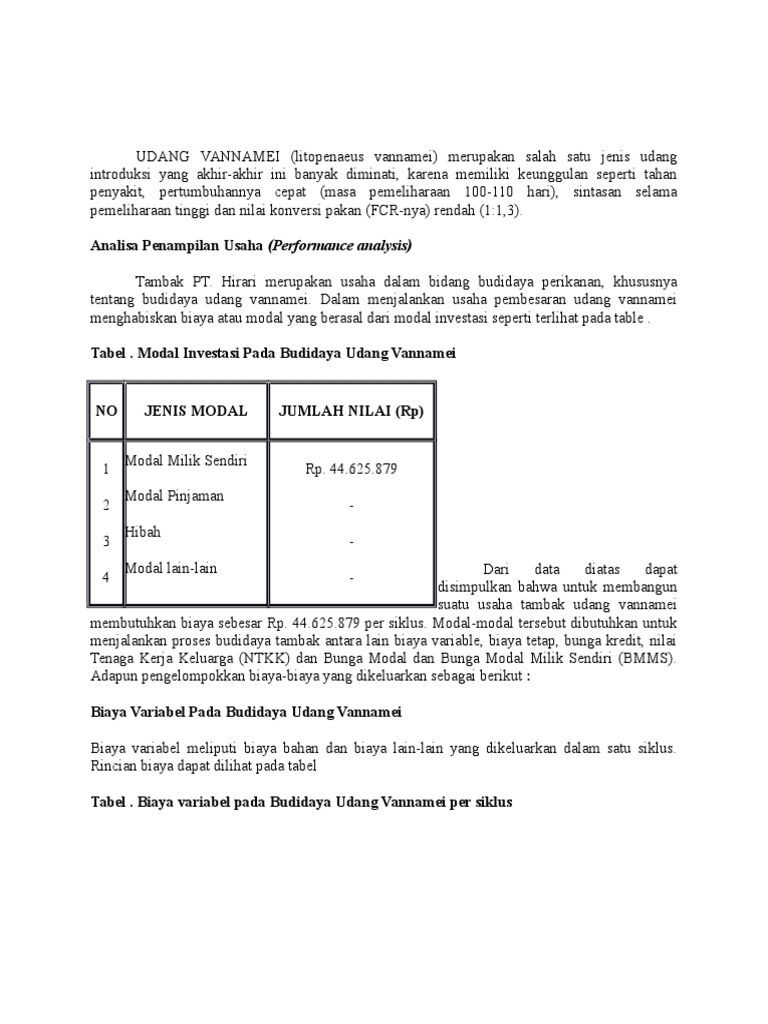 Contoh - Analisis Usaha Budidaya Udang Vaname