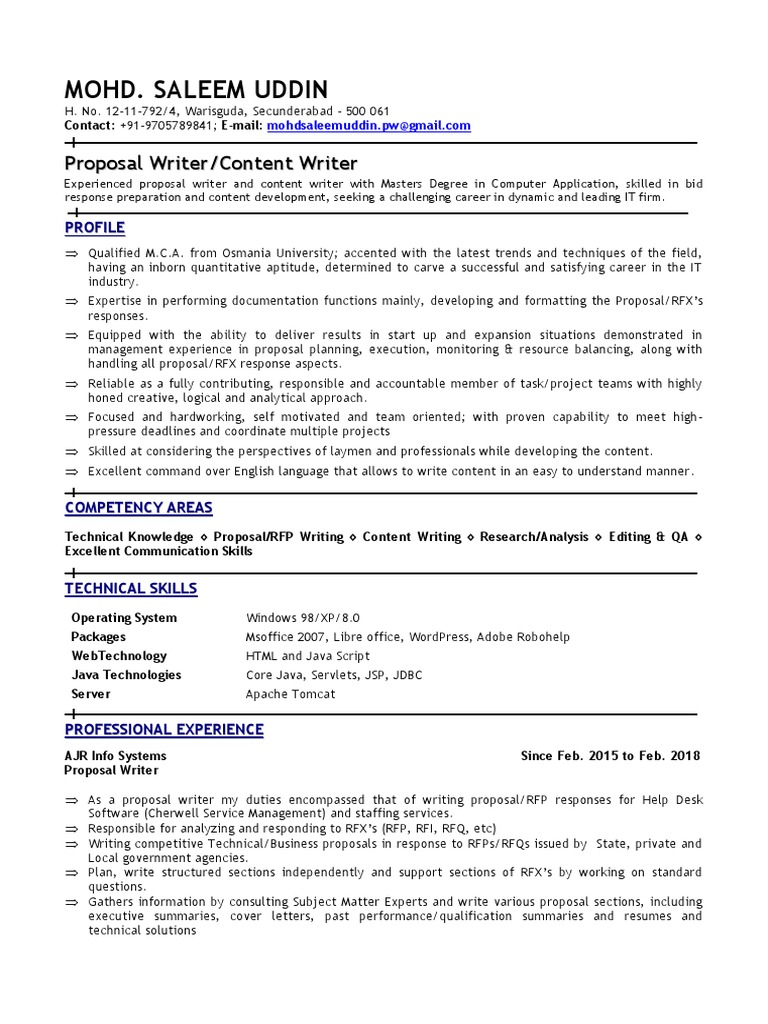 Mohd. Saleem Uddin: P r o p o s a l W r i t e r / C o n t e n t W r i t e r | Request For Proposal | Websites